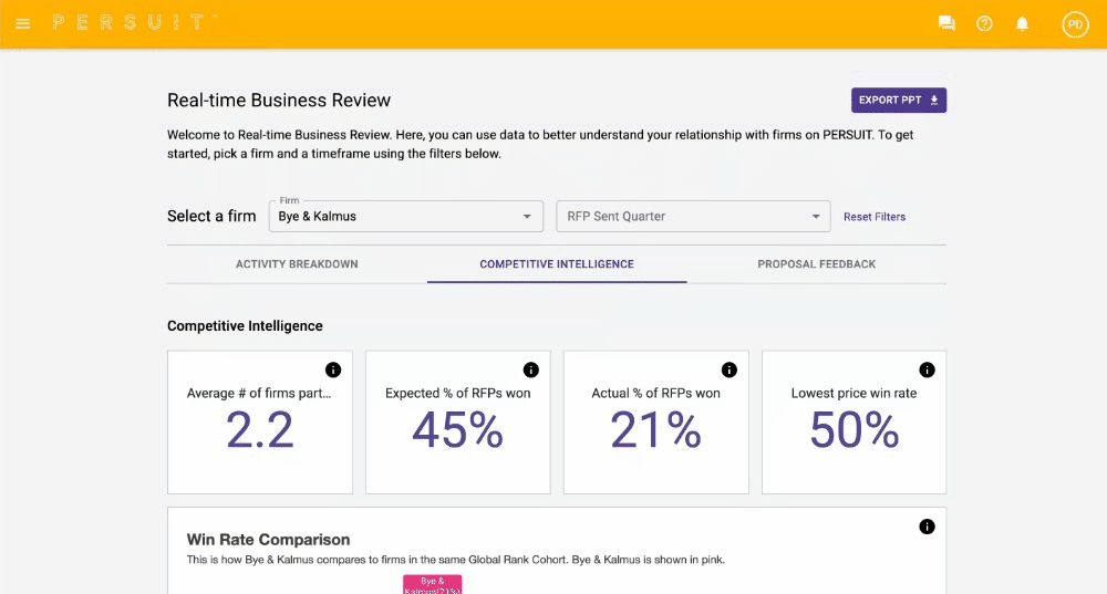 These analytics provide in-house teams with invaluable data on every firm that they work with in PERSUIT.