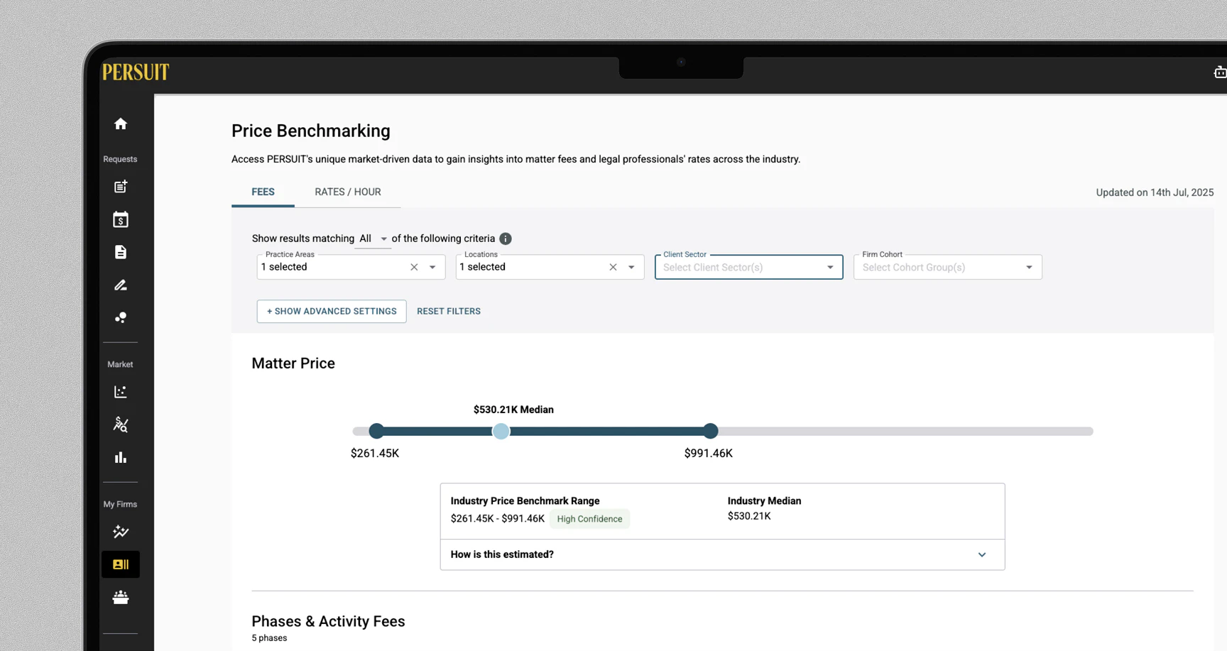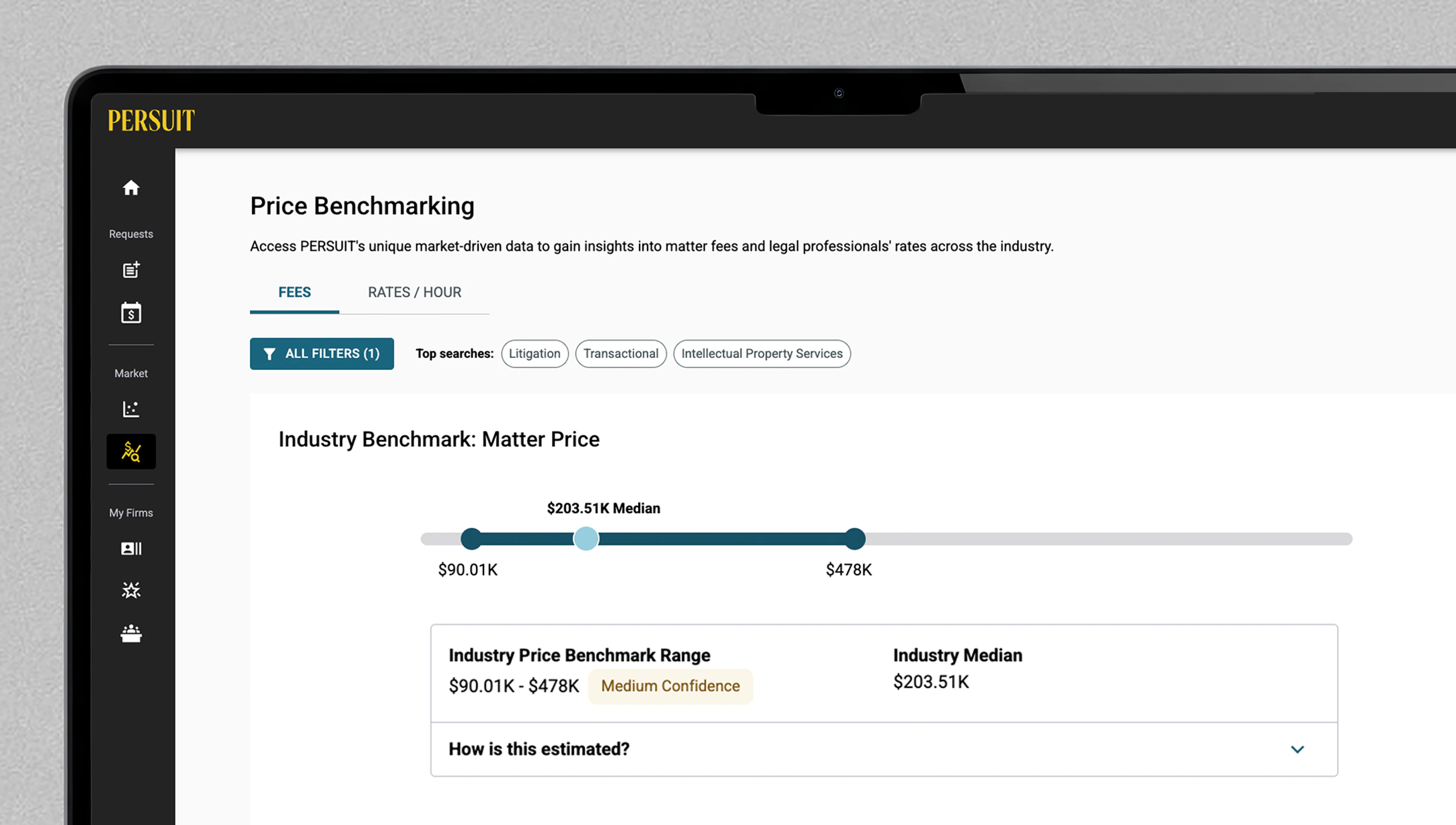 Without benchmarks, every rate discussion is guesswork—and guesswork costs millions. PERSUIT’s real-time pricing intelligence shows what others pay across industries, regions, and matter types, so you can negotiate confidently and stop overspending.